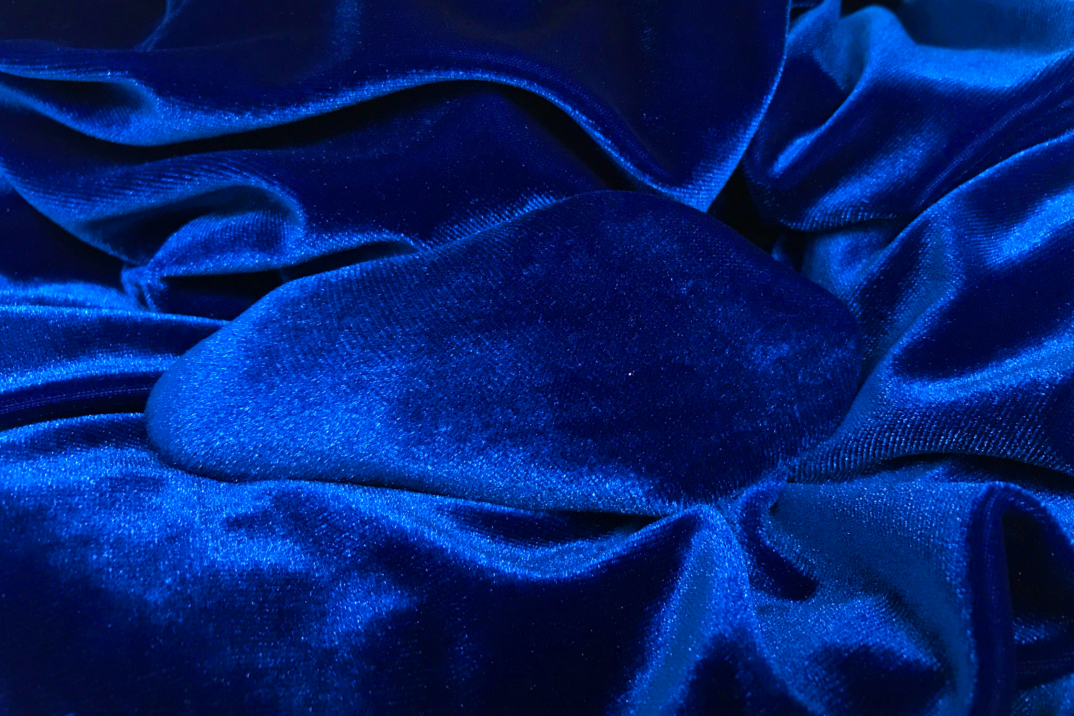 anti-rock (who gets to keep it?), 2017 blue velvet, fired clay, metallic glaze variable dimensions